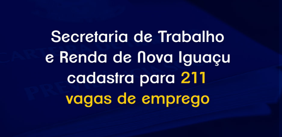Secretaria de Trabalho e Renda de Nova Iguaçu cadastra para 211 vagas de emprego