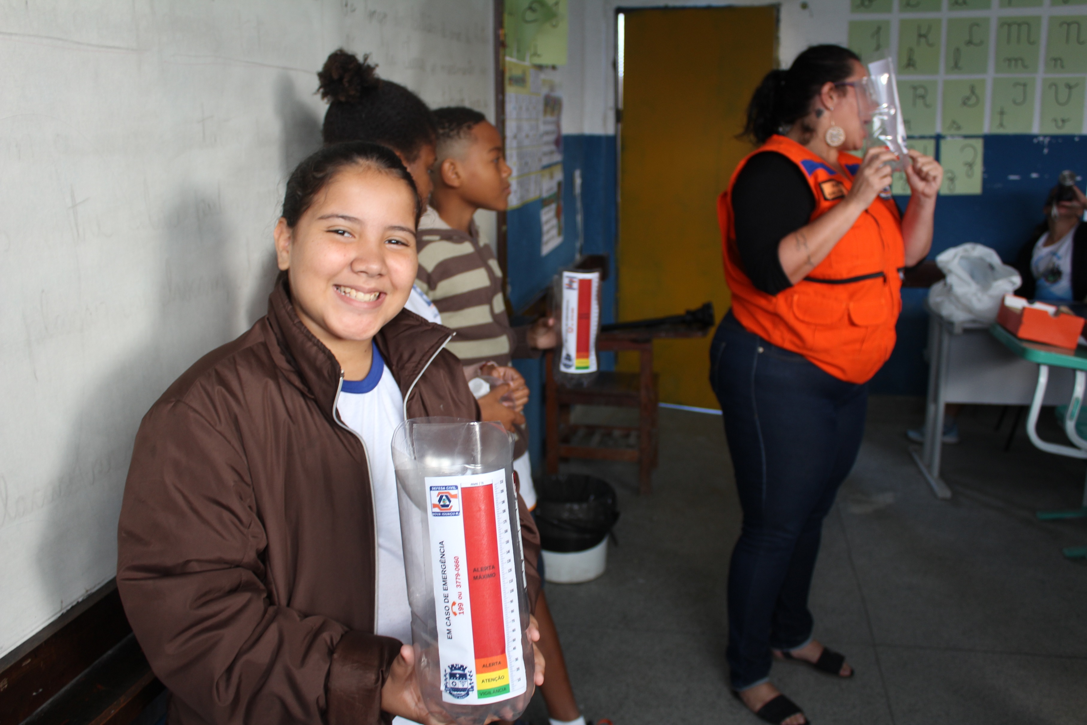 “Aprendi que com um simples pluviômetro no quintal de casa podemos salvar vidas, pois podemos medir a quantidade de chuva que cai na região, alertando moradores e vizinhos sobre riscos de inundações. Agora sei que se cair muita água, devo alertar a Defesa Civil”. A emoção é de Maria Clara de Paiva Almeida, de 10 anos, aluna do 6º ano da Escola Municipal Professora Irene da Silva Oliveira, no bairro Vila de Cava, que recebeu, nesta terça-feira (4) a primeira edição do ano do projeto “Escolas Seguras – Desenvolvendo a Resiliência Através da Educação”, realizado pela Secretaria de Defesa Civil de Nova Iguaçu. A ação, que acontece até a próxima sexta-feira, vai envolver 668 alunos da escola, que participarão de oficinas, palestras e treinamentos com o objetivo de desenvolver a cultura de prevenção e percepção de riscos a desastres na comunidade escolar e por consequência em toda a cidade, elevando a resiliência, reduzindo riscos e evitando mortes.