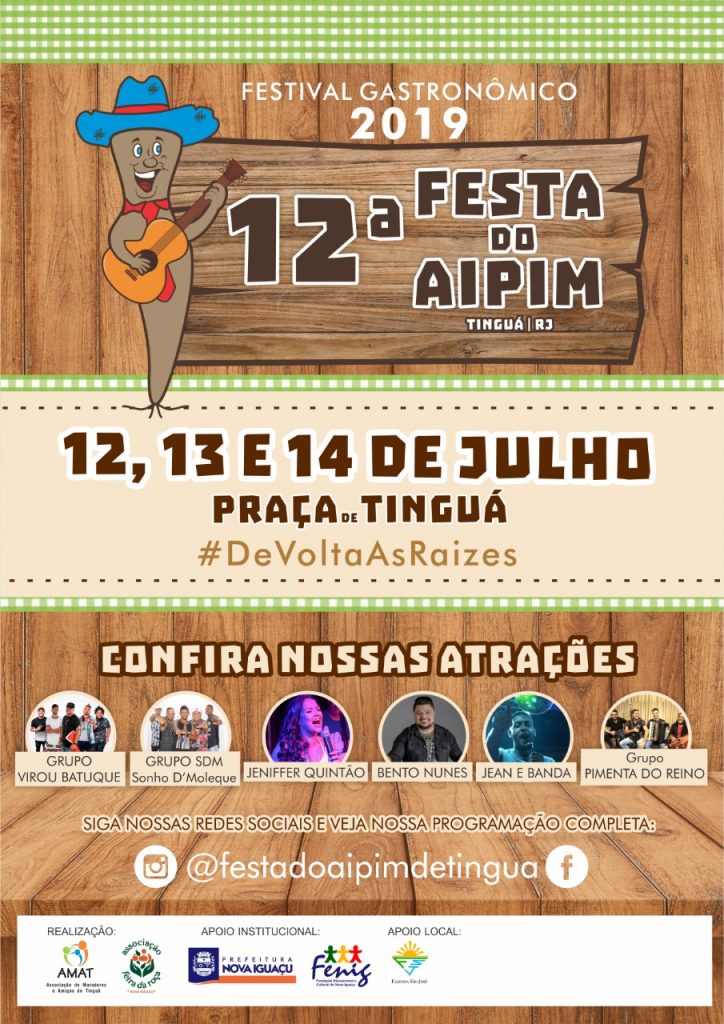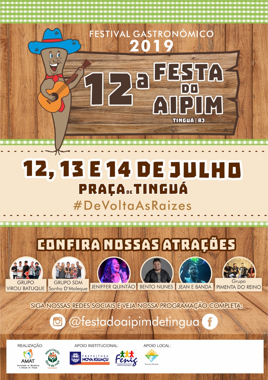 “O aipim representa mais da metade do faturamento da produção agrícola de Nova Iguaçu. Por isto, é importante voltar a organizar esta festa que se tornou uma importante tradição na cidade, resgatando sua origem, na Praça do Tinguá, e sua essência, a gastronomia”, afirma o prefeito Rogerio Lisboa.