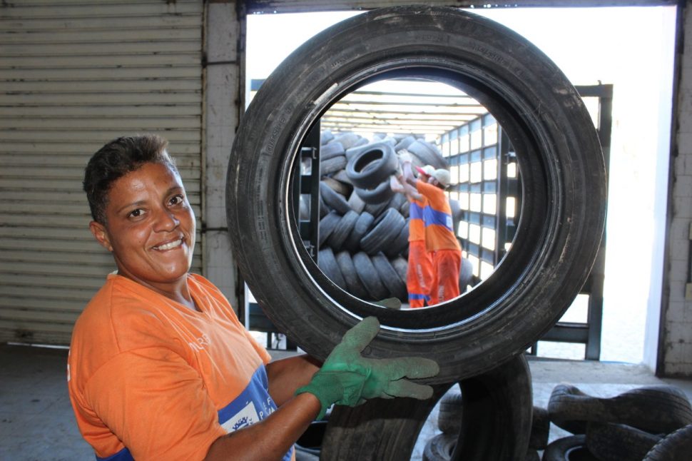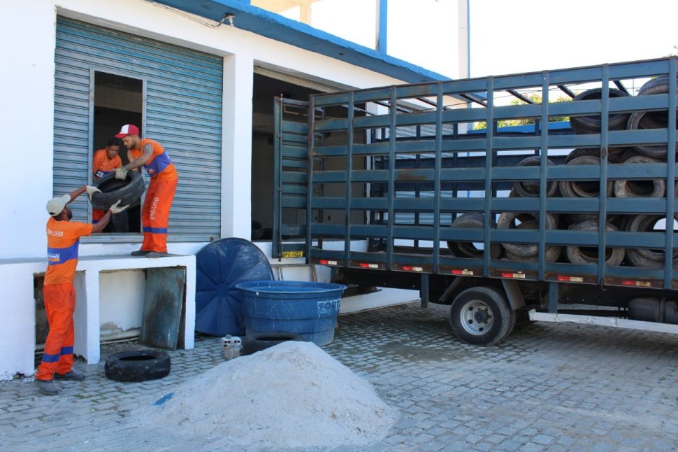 Segundo o diretor técnico da EMLURB, Wesclei Pandim, na cidade existem mais de 200 borracharias. “Semanalmente um caminhão vai passar nestes locais, fazer o recolhimento e levar para o galpão, onde o pneu tem o destino certo, que é a Reciclanip, uma entidade gestora do sistema de logística reversa de pneus inservíveis, que foi contratada pelas fabricantes de pneus para dar o fim correto do material. Na empresa, na Penha, ele vira subproduto, como um granulado de borracha, usado para gramado sintético, solado de sapato, tijolo reciclável, entre outros”, explica Wesclei.