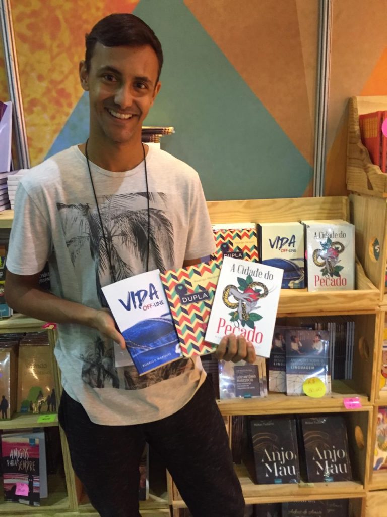 Entre os quatro, Rodrigo Marques é o “veterano” da turma. Morador do bairro de Santa Eugênia, o professor de Ciências da Escola Municipal Nicanor Gonçalves Pereira, já participou de outras edições da Bienal do Livro como autor. ‘A Cidade do Pecado’ é o terceiro livro lançado por ele na festa da literatura.