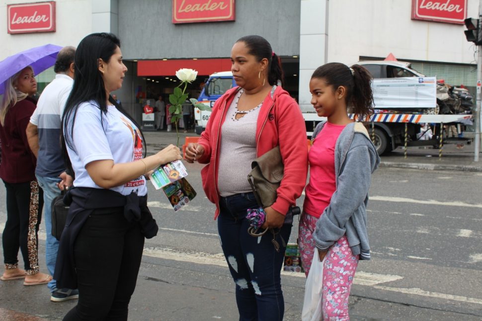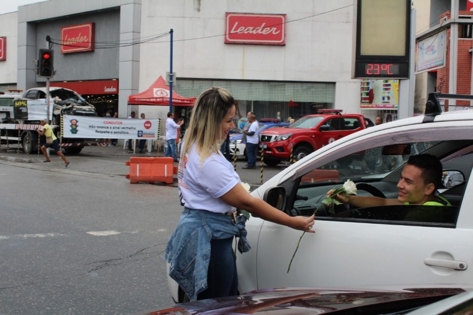 Quem passava a pé pela Via Light também recebeu panfletos educativos e rosas brancas. A atendente Monique Raquel Borges da Silva, de 38 anos e sua filha Camile, de 12, foram orientadas a só atravessar a rua na faixa de pedestres e quando o sinal estiver fechado para os motoristas.