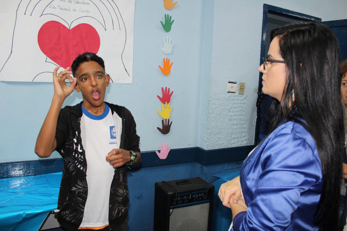 Com a ajuda de uma intérprete, o estudante José Carlos de Barros Neto, de 13 anos, que estuda na Escola Monteiro Lobato, ressaltou que as pessoas surdas não devem ser desprezadas. “O tema foi importante, pois falou de suicídio e depressão, que não é fácil. Muita gente morre e temos que preservar a vida e a união, nunca desprezando o colega que passa por isso. Temos que estar juntos. O 26 de setembro é o Dia de todos os surdos e a cor azul tem que ser respeitada. Somos iguais às pessoas que ouvem”, disse o menino que tem os pais também com problemas de surdez.