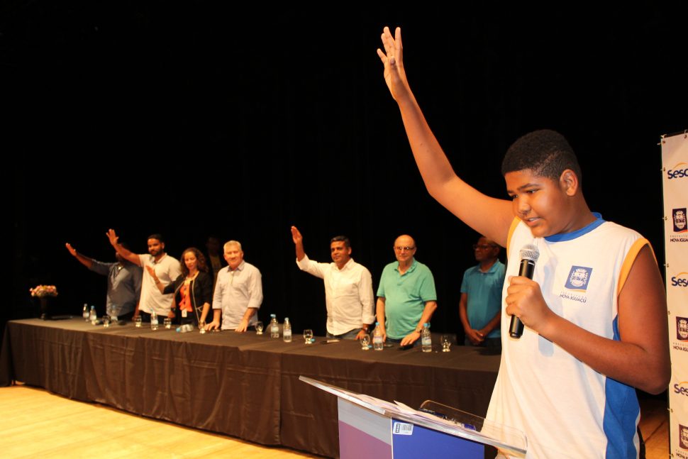 “Não vim aqui só para me divertir, quero ganhar medalhas e dar o primeiro passo para me tornar num atleta profissional. Já sou um privilegiado por ser convidado a fazer o juramento dos jogos”. A emoção é de Isaque Duarte Borges, de 13 anos, aluno da Escola Municipal Professor Franklin Bolivar Fernandes, que vai jogar basquete pela primeira vez nos Jogos Estudantis de Nova Iguaçu (Joeni). A abertura foi nesta quinta-feira (17), no Sesc do município. A grande novidade deste ano são os jogos eletrônicos. A competição, que terá disputa do Fifa 20, um dos videogames mais famosos do mundo, vai de 17 de outubro até o dia 4 de dezembro.O evento, que é uma realização da Prefeitura de Nova Iguaçu, por meio das Secretarias de Esporte e Lazer e Educação, em parceria com o Sesc, vai contar com 62 escolas das redes municipal, estadual, federal, além de particulares, totalizando cerca de 4 mil alunos. Nesta sexta-feira (18), acontece o primeiro dia de competição. Haverá a disputa de futebol society, às 14h, no Sesc.