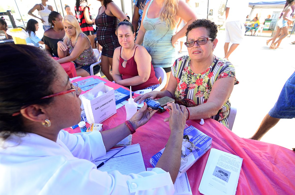 Os serviços oferecidos pela Secretaria Municipal de Saúde foram: agendamento de mamografia, realização de testes rápidos de hepatite B e C, sífilis e HIV, pesagem para o Bolsa Família, aferição de pressão arterial e de glicemia capilar e caderneta do idoso.