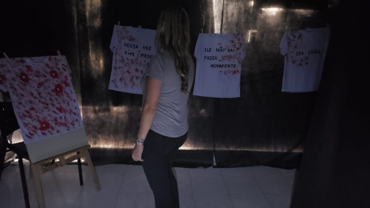 “Queríamos criar um ambiente que causasse angústia e trouxesse um pouco da sensação do que as mulheres vítimas deste tipo de violência passam. Todas as frases, tanto nas camisas quanto no áudio, foram relatadas pelas mulheres atendidas pelas nossas psicólogas”, explica Miriam Magalli, coordenadora de Políticas para Mulheres de Nova Iguaçu, órgão ligado à Secretaria Municipal de Assistência Social.