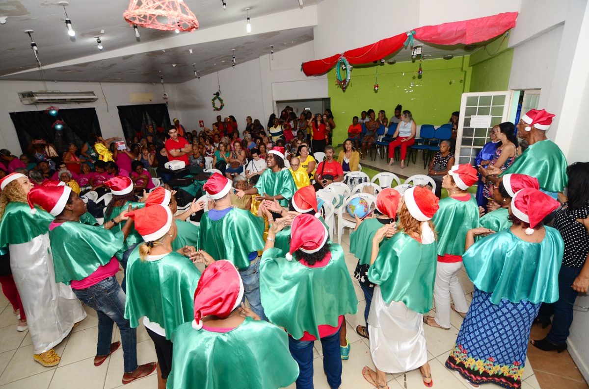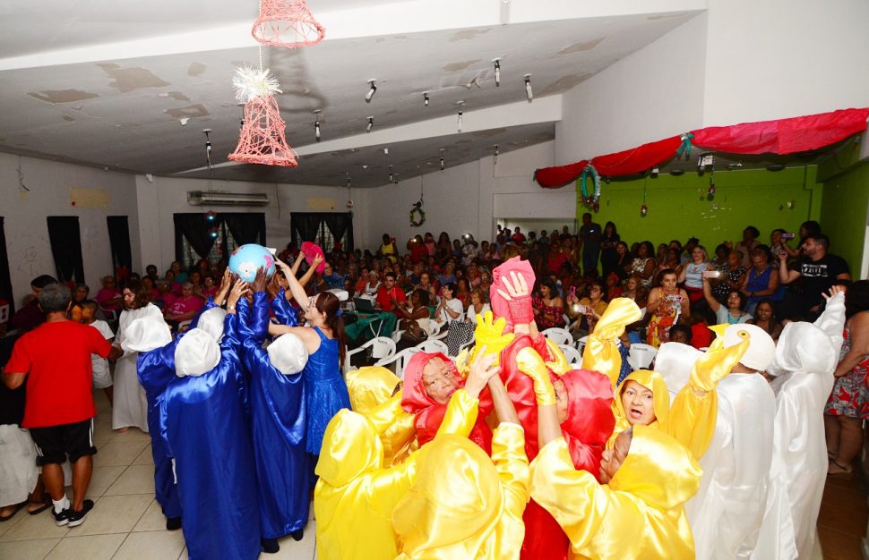 O Natal chegou mais cedo no Espaço Municipal da Terceira Idade (Esmuti). Nesta quinta-feira (19), mais de 200 idosos participaram da tradicional festa natalina, com direito a muito panetone, rabanada e torta salgada. Ainda teve apresentação de peça teatral, exibição de vídeos de ações de funcionários da Secretaria de Assistência Social de Nova Iguaçu e do coral do Esmuti, que emocionou a todos. Rosas brancas foram distribuídas para todos os participantes.