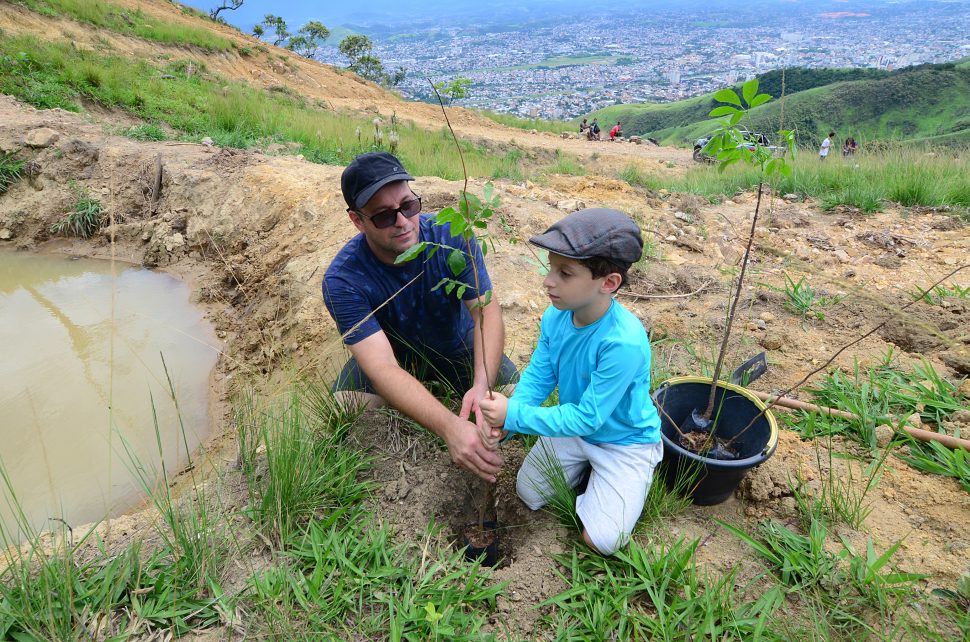 Acompanhado do pai Alexandre Bensabat, de 46 anos, o menino Alexandre Bensabat Filho, de 6, que juntos já plantaram 486 mudas de árvores por diversos pontos de Nova Iguaçu, como o Parque Municipal, Via Light e Tinguá, não ficaram de fora.