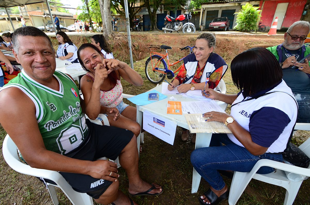 Após 23 anos de relacionamento, o casal Marcos Antônio Teixeira Fernandes, de 48 anos, e Valéria Samuel Duarte, de 44, enfim, vai oficializar sua união. Moradores de Austin, eles estiveram nesta quinta-feira (9) numa das tendas do programa “Prefeitura Presente”, realizado no Campo Vila, na Travessa Carlos Sampaio, para conseguir a isenção da certidão de casamento. O evento reuniu centenas de pessoas entre 9h e 15h. A ação oferece de forma gratuita, serviços de saúde, educação e assistência social.