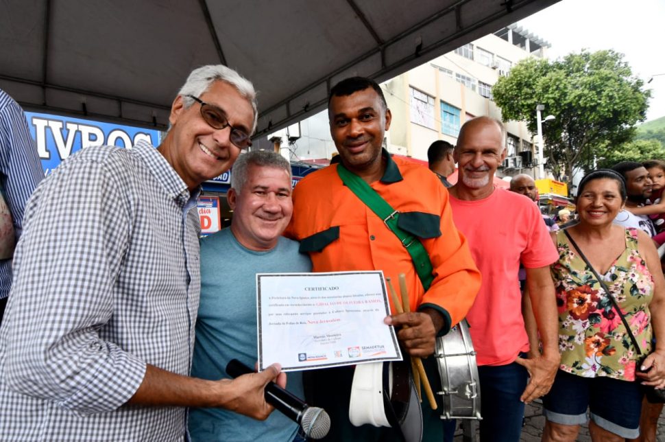 Os foliões se concentraram na Praça Rui Barbosa, no Centro. Antes de seguir com o cortejo, a Prefeitura homenageou três figuras marcantes dos grupos de folia: mestres Gigante, Pipoca e Nego. O vice-prefeito do município, Carlos Ferreira, e os secretários de Cultura, Marcus Monteiro, e Meio Ambiente, Agricultura, Desenvolvimento Econômico e Turismo, Fernando Cid, entregaram os certificados pelos serviços prestados por eles à cultura de Nova Iguaçu. Cid relembrou que Nova Iguaçu promoverá, este ano, o Festival de Folia de Reis.