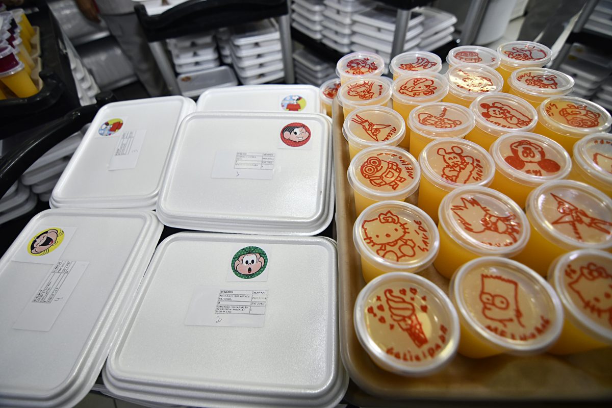 A hora das refeições se tornou um motivo de alegria entre os pacientes internados na ala pediátrica do Hospital Geral de Nova Iguaçu (HGNI). Há mais de uma semana que as marmitinhas são entregues com mensagens motivacionais e desenhos que despertam a curiosidade dos pequenos. Foi assim para Lorena Vitória, de 10 anos. Moradora de São João de Meriti, fã da Turma da Mônica, ela conta que estava ansiosa querendo saber qual figurinha iria vir em sua marmitinha no almoço desta sexta-feira e, para sua surpresa, recebeu justamente o adesivo da principal personagem de Maurício de Souza, além de um copo de suco com a mensagem de “saúde” e um desenho estampado.
