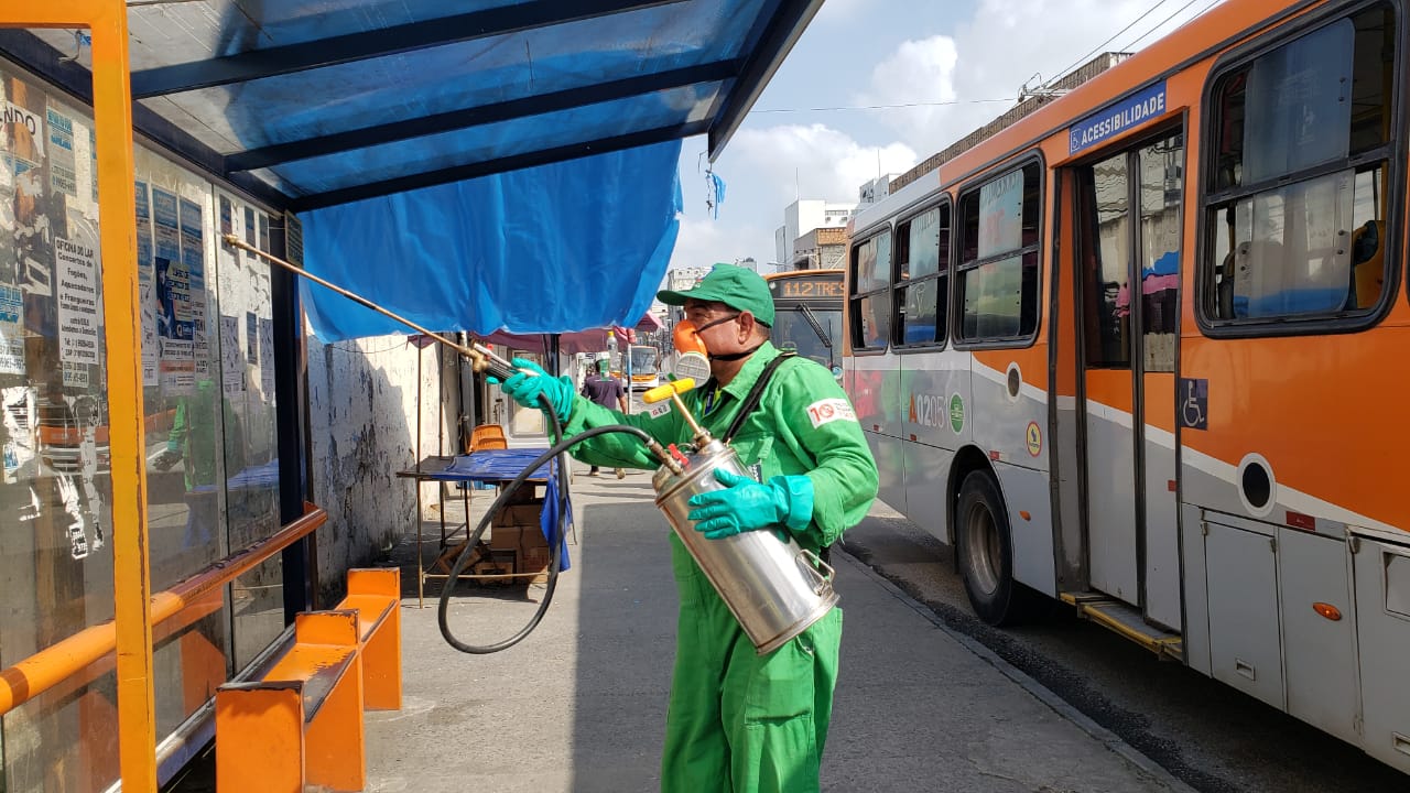 Depois de fazer a descontaminação dos ambientes externos das unidades de saúde do município, a Prefeitura de Nova Iguaçu ampliou o trabalho de reforço da higienização a pontos da cidade onde há maior circulação de pessoas. Nesta terça-feira (31), agentes da Superintendência de Vigilância Ambiental (Suvam), órgão ligado à Secretaria Municipal Saúde (Semus), realizaram o serviço em passarelas, pontos de ônibus, praças, estação de trem e no terminal rodoviário, pulverizando hipoclorito (mistura de água com água sanitária) em corrimãos, paredes e arredores como forma de combater a disseminação da Covid-19.