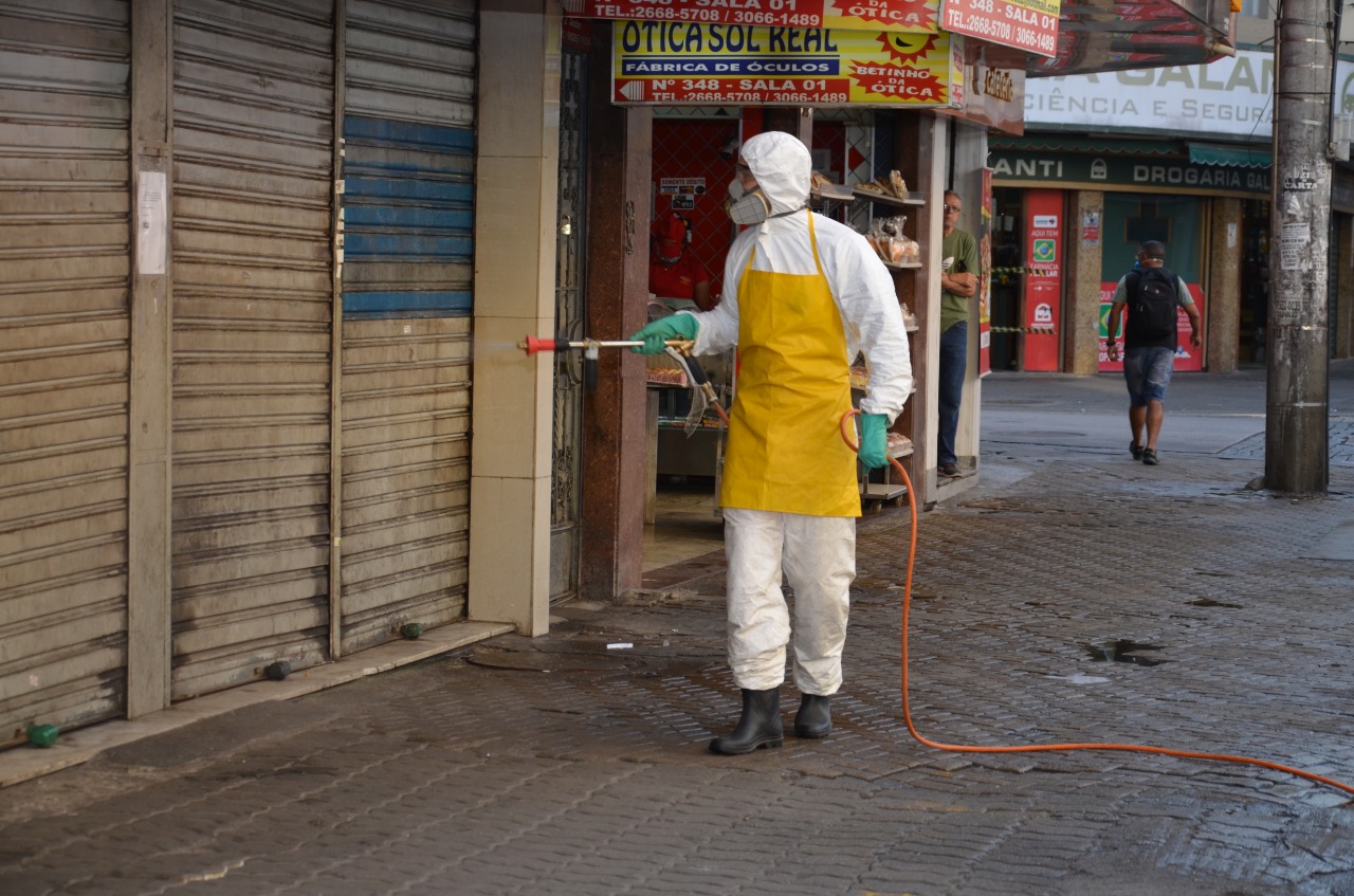 Para evitar a disseminação da Covid-19, a Prefeitura de Nova Iguaçu continua fazendo a limpeza dos espaços públicos da cidade. Nesta terça-feira (14), agentes da Superintendência de Vigilância Ambiental (Suvam), órgão ligado à Secretaria Municipal Saúde (Semus), finalizaram o trabalho no principal pólo comercial, o Calçadão. Foram higienizadas as calçadas entre a Rua Otávio Tarquínio até a rodoviária do centro da região, além do bairro de Comendador Soares. O produto usado para a desinfecção foi à base de amônia e água. Equipes ainda fizeram a limpeza de portas de estabelecimentos fechados, corrimões de agências bancárias e pontos de ônibus.