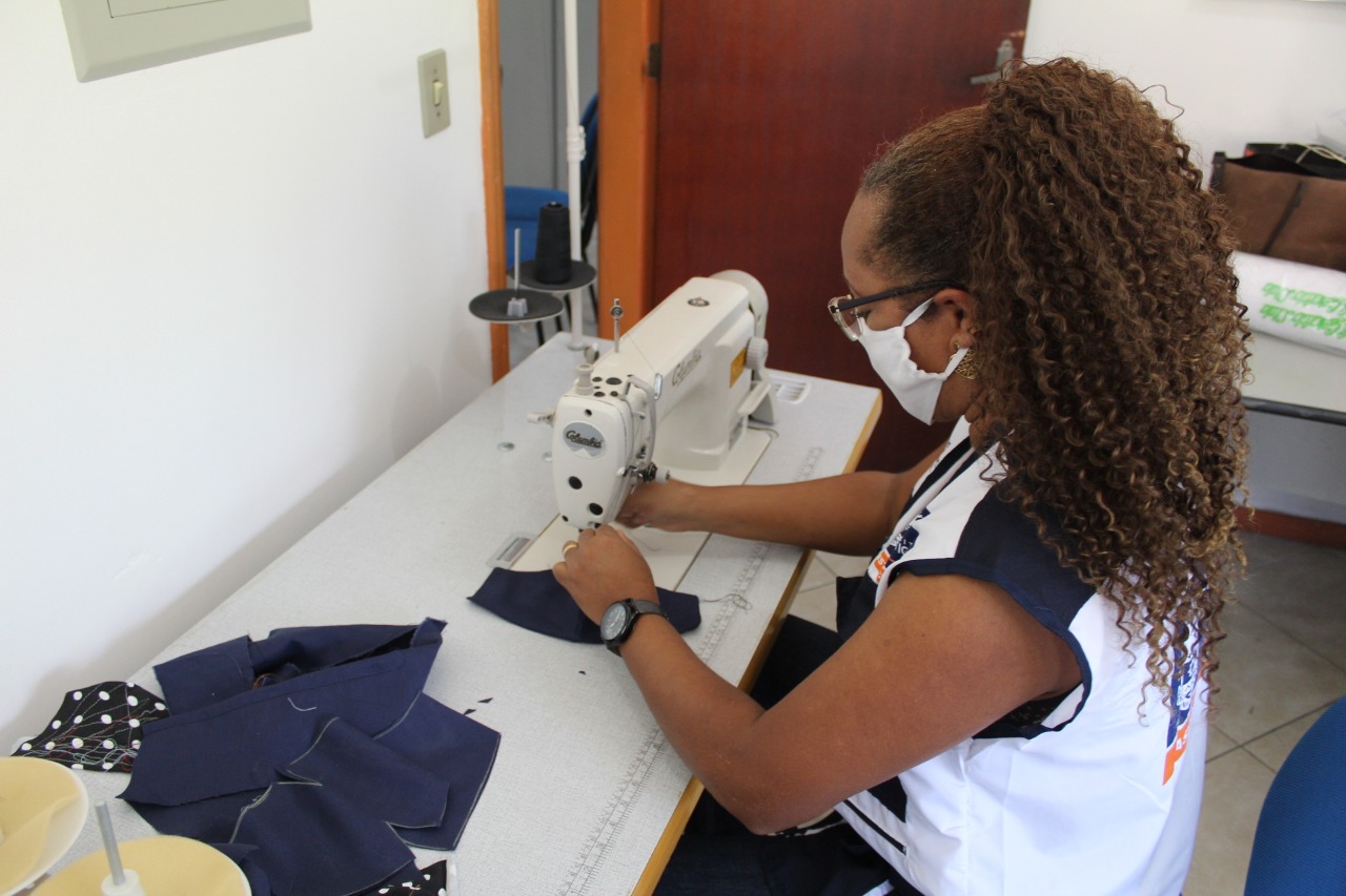 Costureira do Esmuti há seis meses, Cris Cabral, de 50 anos, afirmou que as máscaras vão ajudar a evitar a propagação da Covid-19:
