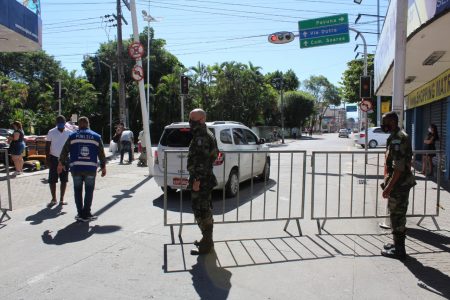 Nas barreiras, os agentes estão abordando as pessoas para saber para onde estão se dirigindo. O acesso é liberado para quem quer acessar o comércio que tem seu funcionamento permitido. Caso contrário, é solicitado o retorno para casa. O trânsito também foi interrompido nas imediações do Calçadão.