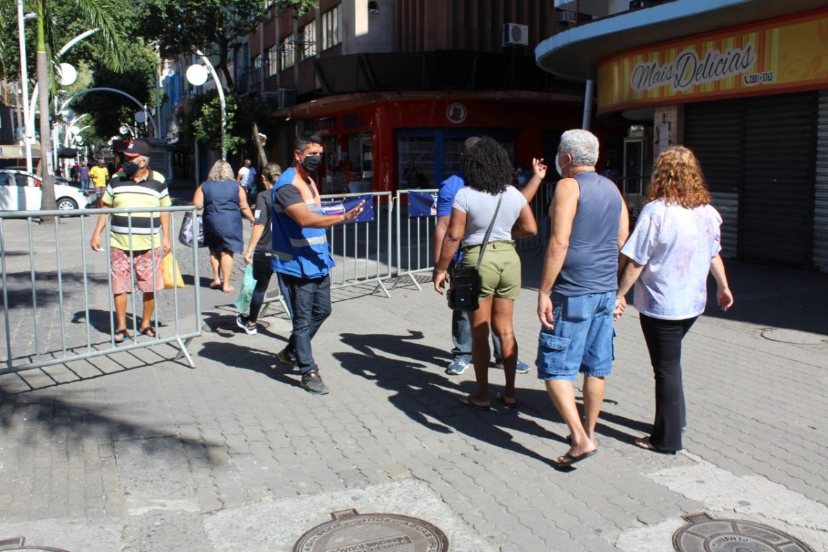 Um dos motivos para o fechamento parcial do Calçadão de Nova Iguaçu é que das 3.200 denúncias recebidas pela Prefeitura, cerca de 70% delas estão relacionada às aglomerações e 33% ao centro comercial. Desde o dia 22 de março, o município já emitiu 578 autos de embargos.