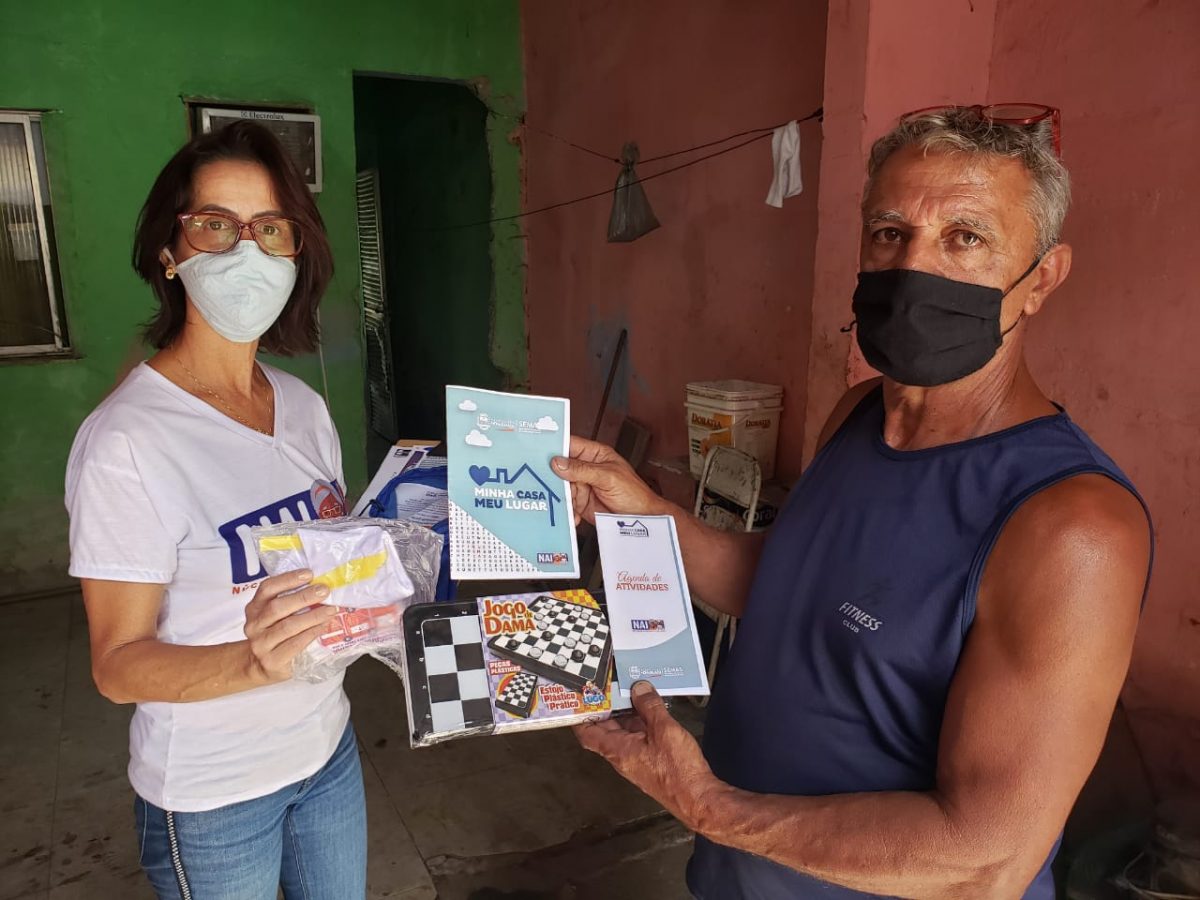 Após identificar os idosos, por meio do Cadastro Único, as equipes do NAI fazem visitas domiciliares nas quais distribuem máscaras e orientam sobre a importância do isolamento e dos cuidados com a higiene como forma de prevenção ao novo coronavírus. Além disso, os idosos são presenteados com kit que contém jogos de carteado, jogo da memória, dama e também caderno exclusivo da SEMAS com atividades como caça-palavras, palavras cruzadas, labirinto e sudoku com temas ligados à assistência social. Todo o material é desinfectado antes de ser entregue.Aos 63 anos, Francisco Jorge de Castro Lannes é um dos idosos já identificados pelo programa. Ele mora no bairro Nova Brasília e recebeu a visita do NAI. “Eu trabalho fazendo frete, mas a procura pelo meu serviço caiu muito devido à pandemia. Como moro sozinho e praticamente não tenho trabalhado, fico sem companhia a maior parte do tempo. O projeto tem me ajudado a ocupar a mente e manter o cérebro ativo. Me divirto muito e isso faz o tempo passar mais rápido”, afirma Francisco Jorge. “Além dos jogos, recebi também uma máscara, item fundamental nos dias de hoje”, complementou o idoso, lembrando a importância de tomar os cuidados necessários para evitar o coronavírus.