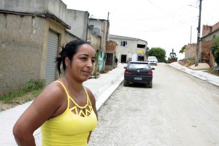 “Aqui acontecia o seguinte: chovia era lama, parou a chuva, era a vez do o barro e, depois, a poeira. Fora que ainda tínhamos outros problemas, como carros atolados nas ruas, que eram intransitáveis. Nas calçadas, muita gente leva tombo ou tropeçava. Agora já consigo sair da porta da minha casa sem pisar na lama. Só falta chegar o asfalto, mas isso é questão de tempo”, afirma a cuidadora de idosos Cláudia Pinheiro, de 41 anos, 22 deles morando na Rua José Cabral, umas das vias contempladas pela obra.