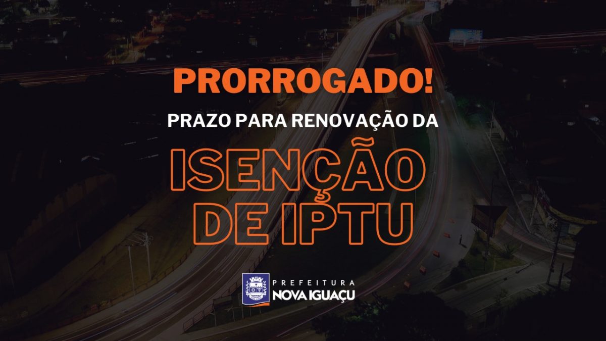 A Prefeitura de Nova Iguaçu prorrogou o prazo para a renovação do benefício de isenção de Imposto Predial e Territorial Urbano (IPTU) para o biênio 2021-2022. Agora, quem deseja renovar o pedido deve fazê-lo até o dia 1º de agosto deste ano. Antes, a data limite era 31 de dezembro.