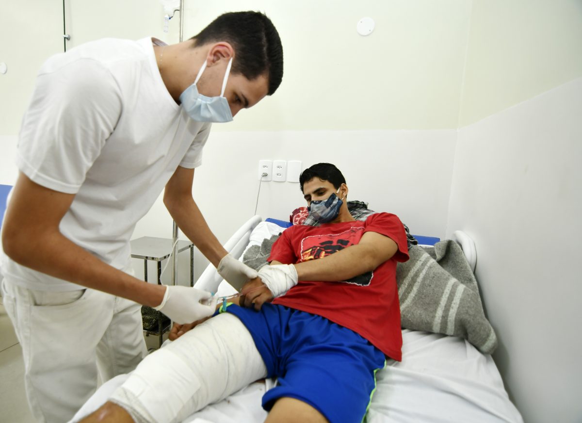 Jorge William Trindade, de 23 anos, enfrentou momentos de apreensão ao se acidentar de moto duas vezes em 15 dias. No segundo, mais grave, foi socorrido para a emergência do HGNI (HGNI) com fratura de fêmur. Precisou passar por cirurgia, ficou internado por oito dias e recebeu alta. Ele relembrou o ocorrido.