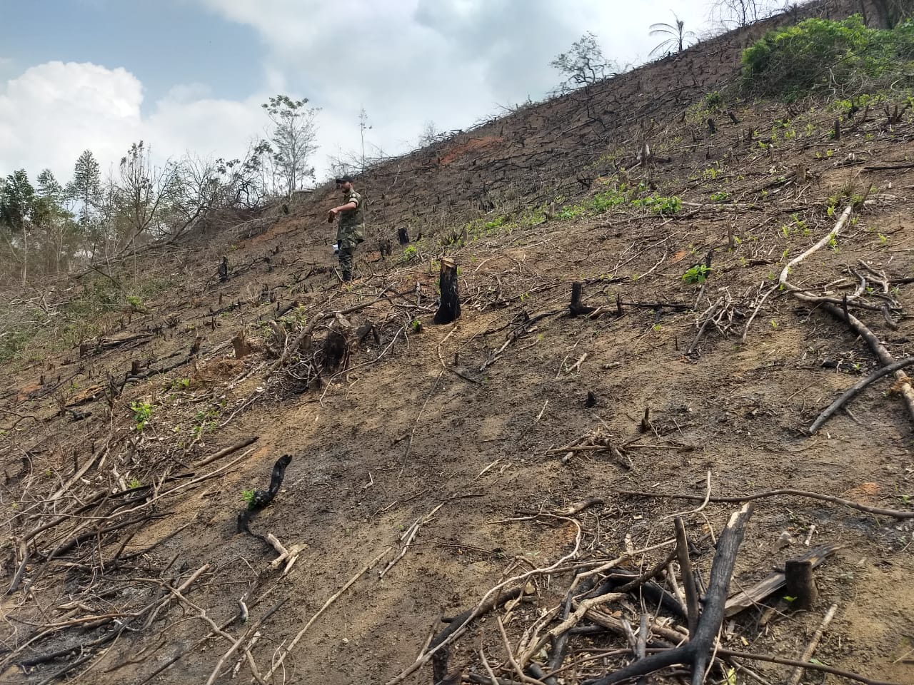 Cinco pessoas foram flagradas embalando carvão em uma grande área de vegetação que foi destruída e a madeira queimada em um forno para a obtenção do carvão. O produto era embalado e etiquetado no local e, segundo as investigações preliminares, iria ser comercializado em pelo menos uma loja, em Vila de Cava.