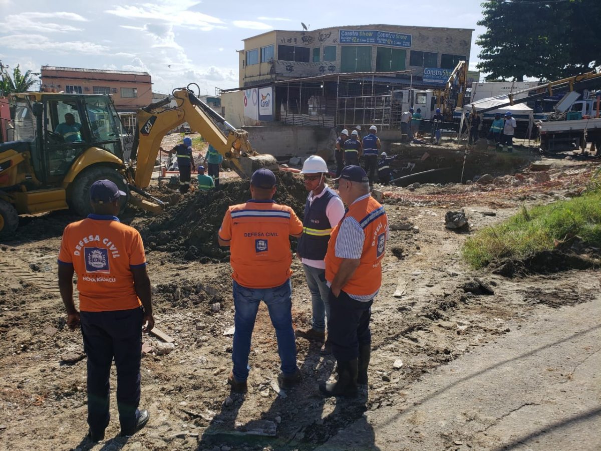 Uma equipe da Secretaria Municipal de Defesa Civil de Nova Iguaçu esteve no Km 32, onde uma tubulação de água, pertencente à empresa Águas do Rio, se rompeu na madrugada deste sábado (26). Diversas casas em pelo menos 12 ruas do bairro foram atingidas. Até o fim da tarde, não houve registro de pessoas feridas, desabrigadas ou desalojadas.