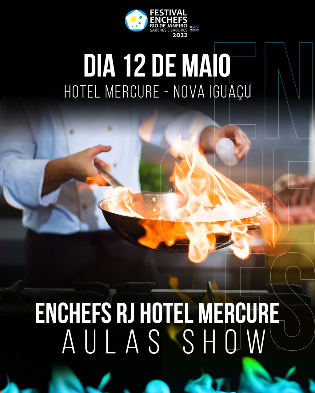 Nova Iguaçu, capital nacional da gastronomia. A partir desta quinta-feira (12), a cidade recebe o “Festival Enchefs Rio de Janeiro – Saberes e Sabores”. O evento, aberto ao público, receberá mais de 50 chefs de cozinha de todo o Brasil, tem o apoio da Secretaria Municipal de Desenvolvimento Econômico, Trabalho e Turismo (SEMDETTUR) e da Fundação Educacional e Cultural de Nova Iguaçu (FENIG).