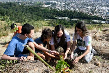 “O objetivo é trazer mais mudas para a mata atlântica e fazer um bioma propício para mostrar à criançada o que é o melhor para o nosso futuro. Aqui nós estamos plantando hoje para colher amanhã”, conta Marcelle, ao lado de Alex, seu irmão, de 9 anos.