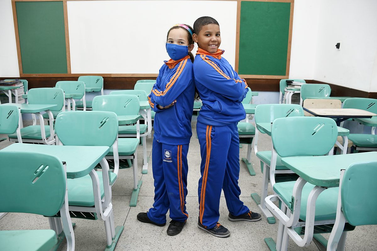 Alunos da Escola Municipal Doutor Thibau, no bairro da Luz, em Nova Iguaçu, Hillary Ferreira de Oliveira e Patrick Romaneli, ambos de 9 anos, estavam entusiasmados dentro de sala de aula, nesta quinta-feira (7). Eles e outros estudantes receberam os uniformes para o inverno, com calça e casaco, que começaram a ser entregues esta semana pela Prefeitura. Até o dia 15, todos os mais de 66 mil alunos das 143 unidades escolares do município vão receber o material.