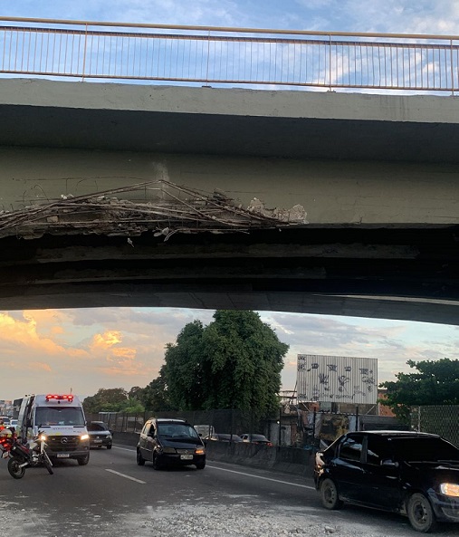 Após um caminhão com altura acima da permitida colidir no Viaduto da Rua Barros Júnior, neste sábado (4), e danificar parte da estrutura, equipe da Secretaria de Infraestrutura de Nova Iguaçu vistoriou o local e constatou danos numa viga. Com isso, uma faixa do viaduto está interditada e a passagem de caminhões e carretas está proibida. O reparo vai ser feito pela Concessionária CCR Nova Dutra.