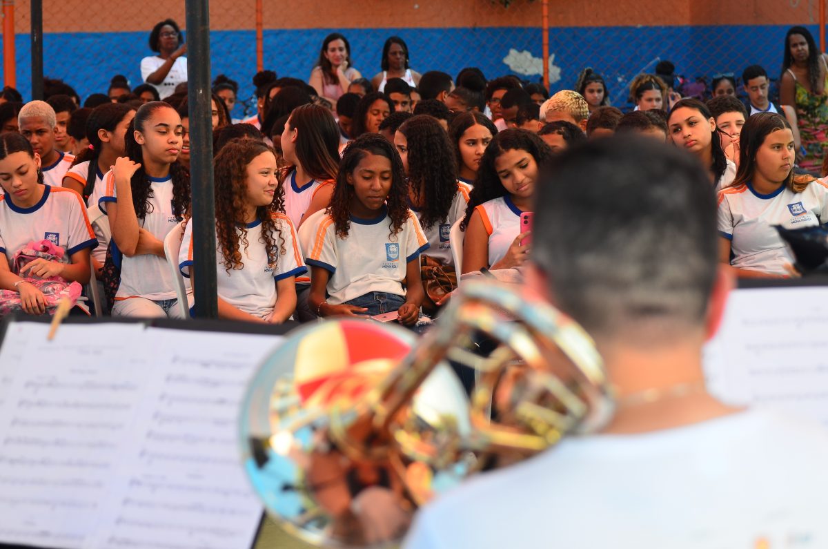 Ricardo Santos, músico da OSB há 12 anos, conta que o projeto Conexões Musicais busca levar música às pessoas com menos acesso à cultura. “Muitas crianças nunca haviam assistido a um concerto. Queremos popularizar a música e a arte, e mostrar que elas podem ser um agente de transformação social”, afirmou o músico, integrante do quinteto de metais que se apresentou na E. M. Professora Irene da Silva Oliveira.