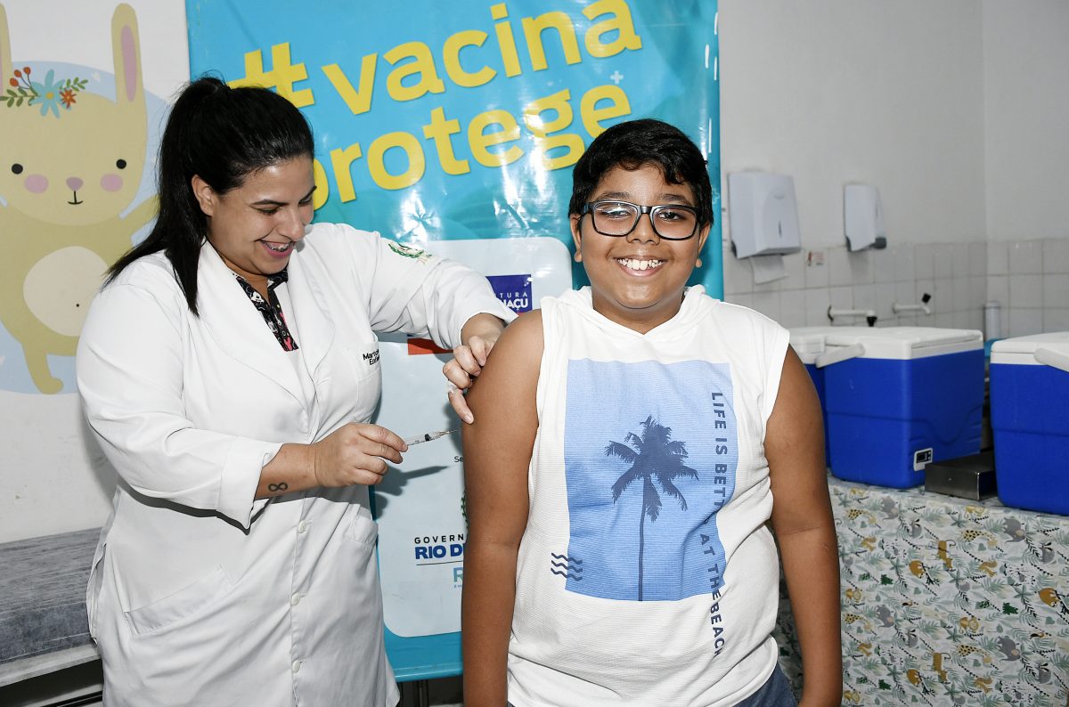 O estudante Felipe Cardoso Pimenta, de 11 anos, já garantiu sua primeira dose da vacina. “Nem doí, foi tão rapidinho. Vou incentivar todos meus amigos a tomarem também”, afirma.