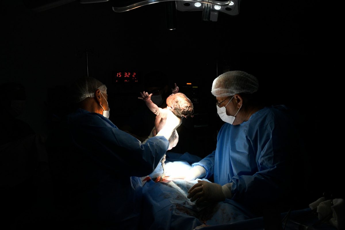 A cesariana durou aproximadamente 40 minutos e contou com a participação dos médicos obstetras Nilson Gomes, de 67 anos, e Ricardo Rodrigues de Souza, de 77, da pediatra Mônica Araújo, de 54 e do anestesista Lucas Guerra, de 38. Ambos foram auxiliados pela enfermeira obstétrica e instrumentadora cirúrgica Vanessa Rosa, de 45, e toda equipe do centro cirúrgico da unidade.