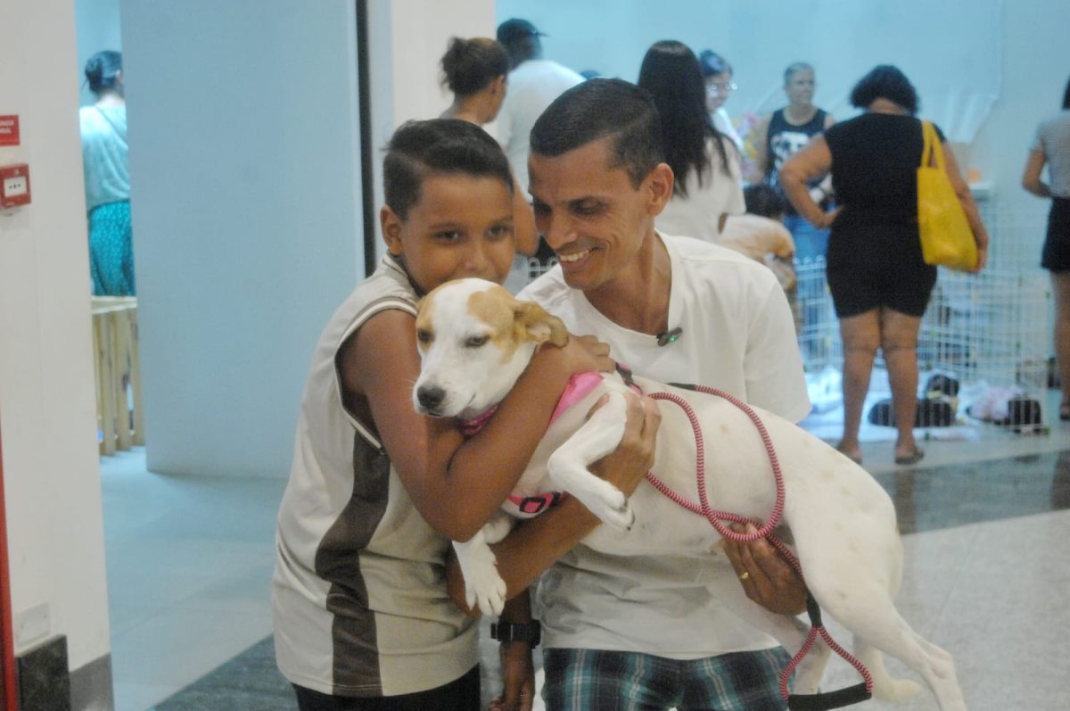 O menino Emanuel Souza, de 9 anos, fez um pedido ao pai Rubem Souza, de 46: “Quero ter um irmãozinho de quatro patas!”. O sonho da criança foi realizado neste sábado (10), após ele adotar uma cachorrinha na primeira campanha de adoção de animais de 2026, promovida pela Prefeitura de Nova Iguaçu, por meio da Secretaria Municipal de Defesa e Proteção dos Animais, no Top Shopping.