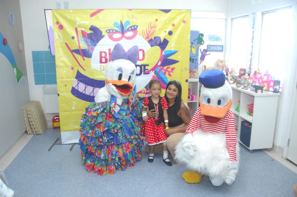 Após a visita aos leitos, a comemoração seguiu para a brinquedoteca da unidade, espaço dedicado à recreação e ao desenvolvimento dos pacientes. As crianças que não estavam acamadas puderam brincar, tirar fotos e arriscar alguns passos de samba, vivendo um Carnaval adaptado à realidade hospitalar.