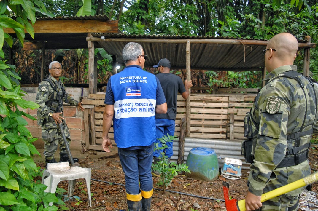 A Prefeitura de Nova Iguaçu resgatou, nesta quinta-feira (22), um porco que sofria maus-tratos em um chiqueiro construído de forma irregular às margens do Rio Tinguá, no bairro Tinguá. A ação foi realizada por agentes da Guarda Municipal Ambiental, vinculada à Secretaria Municipal de Agricultura e Meio Ambiente, em conjunto com a Secretaria Municipal de Defesa e Proteção dos Animais. Além do resgate do animal, a estrutura irregular foi demolida por causar poluição ambiental e colocar em risco a saúde dos animais e do rio. O responsável pelo local não foi localizado.
