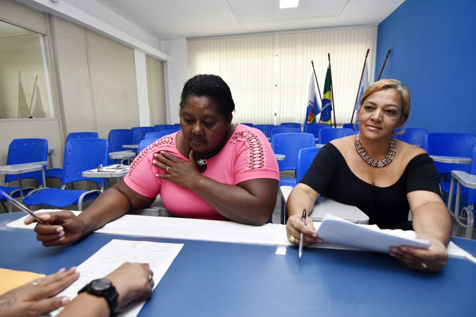 As amigas Renata Patrícia de Oliveira Nascimento, de 45 anos, e Dalva Aparecida Souza e Silva, de 55, deixaram para se cadastrar no último dia de inscrição. Elas estão confiantes que após receberem a carteirinha suas carreiras vão decolar.