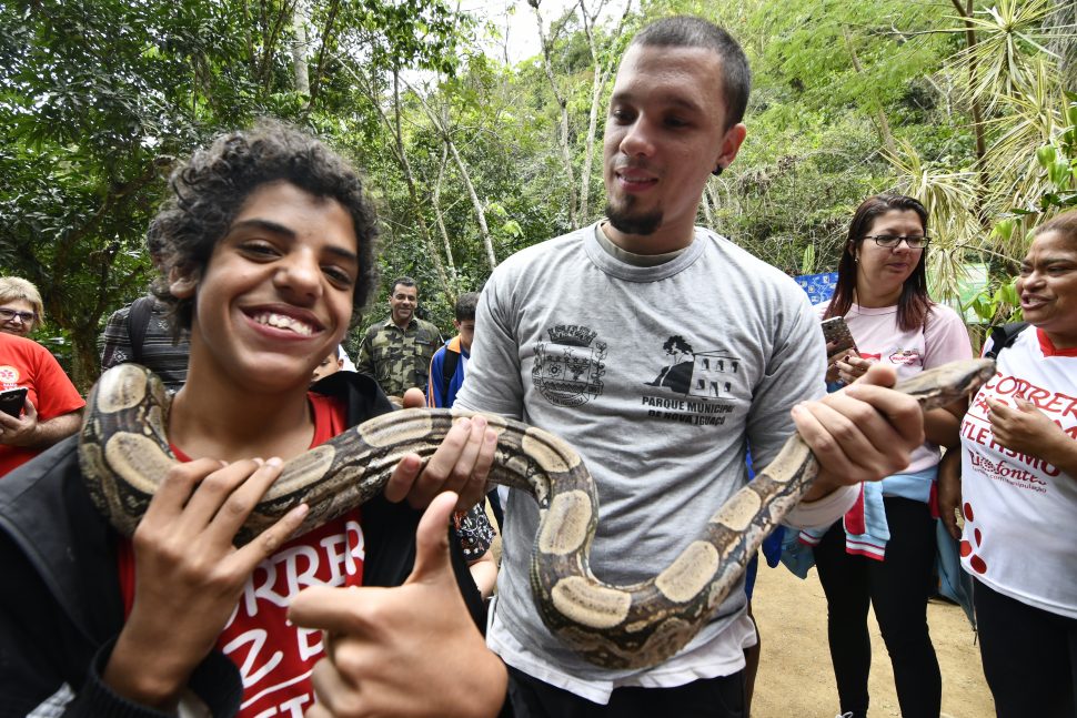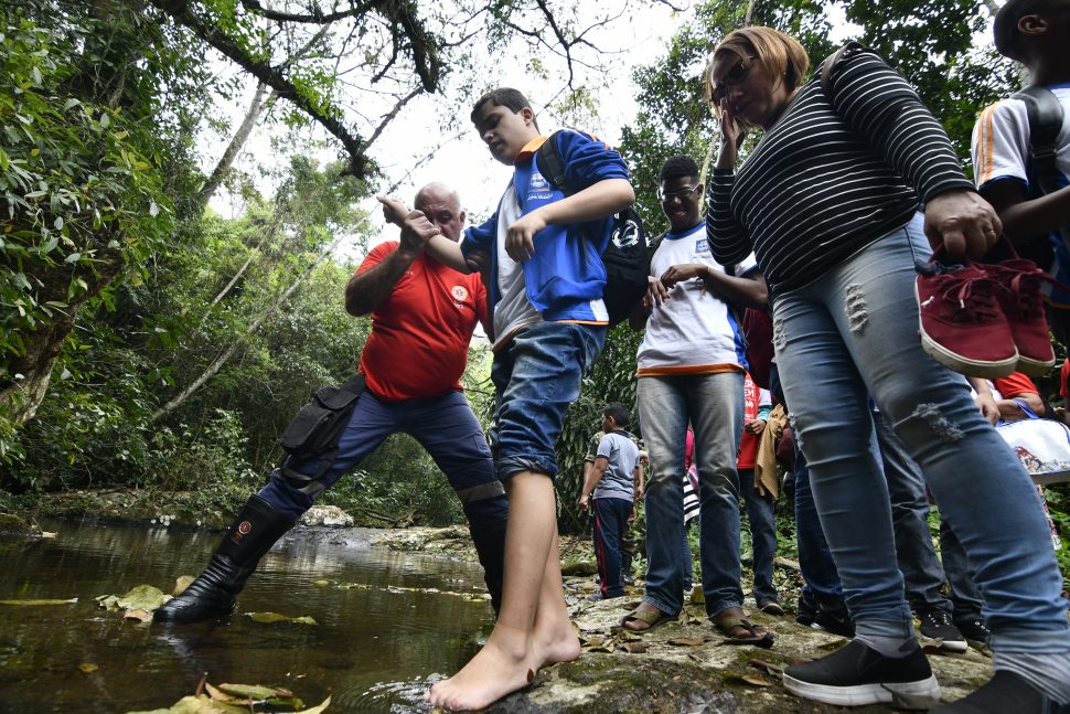 Tocar diferentes texturas de árvores, sentir o cheiro fresco da terra, ouvir o som dos pássaros. Tudo isso em um ambiente rodeado de verde e biodiversidade. Esta foi a experiência que crianças com deficiência tiveram na manhã desta terça-feira (24), ao participarem da primeira ação do projeto ‘Parque Para Todos’, da Prefeitura de Nova Iguaçu. Cerca de 15 alunos da rede municipal de ensino portadores de deficiência participaram de uma visita ao Parque Natural Municipal, o Parque do Vulcão. Os estudantes foram acompanhados por colegas escolhidos por eles, professores e agentes da Guarda Ambiental Municipal (GAM).