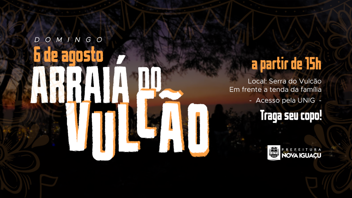 Os meses de junho e julho já ficaram para trás, mas as festas típicas desta época do ano, não. No próximo domingo (6), a Secretaria Municipal de Agricultura e Meio Ambiente (SEMAM), em parceria com a Fundação Educacional e Cultural de Nova Iguaçu (FENIG), promove o Arraiá da Serra do Vulcão. O evento, como o nome já sugere, será realizado na Serra do Vulcão, em frente a Tenda da Família, a partir das 15h.