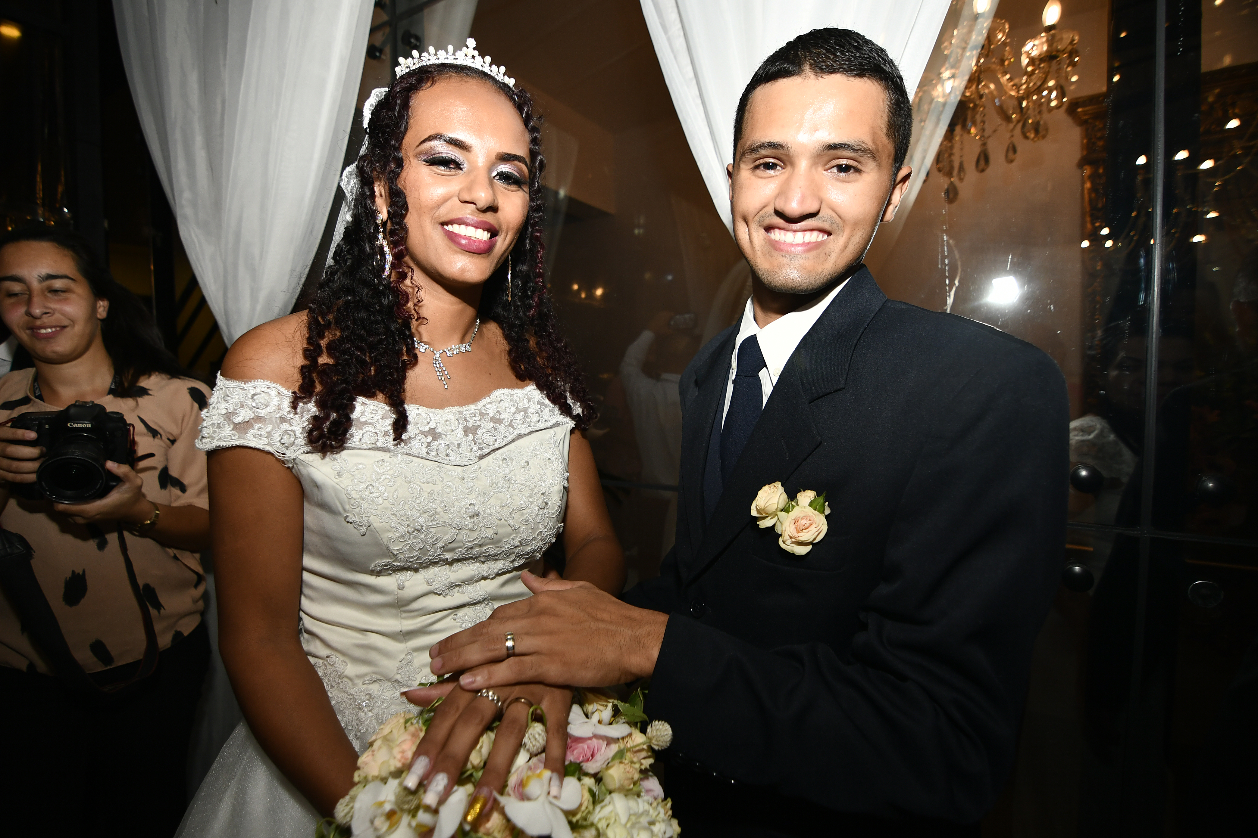 “Ganhei essa festa linda da Prefeitura e através de uma postagem que fiz nas redes sociais para tentar comprar um vestido de até R$ 100, que era o que eu tinha. Mas várias pessoas viram nossa história e se mobilizaram para me ajudar. Ganhei vestido, a roupa do meu noivo, buquê e até maquiagem. Estou muito feliz e sem acreditar até agora que realizei meu sonho”, emociona-se.
