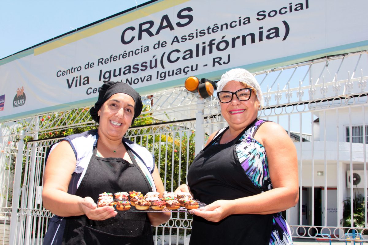 Inaugurado em junho, o CRAS Vila Iguassú, além de oferecer serviços socioassistenciais, também é voltado para a inclusão produtiva e conta com diversas oficinas para os usuários. Somente no primeiro trimestre de funcionamento, 24 oficinas foram finalizadas, capacitando cerca de 120 pessoas, sendo 80% mulheres. Entre elas está Magali Cardoso, 55 anos, que participou da oficina de culinária.
