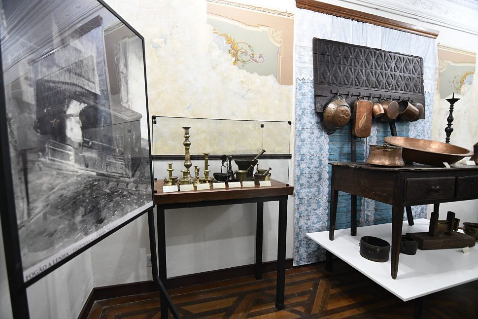 Entre os utensílios expostos estão faianças portuguesas do século XVII, porcelanas chinesas dos séculos XVI e XVII (Dinastia Ming), louça inglesa de inspiração chinesa, padrão ‘willow’, conhecido no Brasil como ‘Pombinhos’, mesa de jacarandá, no período de D.Maria I (c.1800), objeto de estanho, como galheteiros do século XVIII, garrafas de vidro, castiçal, tocheiro e palmatória. Quem for à exposição ainda poderá encontrar objetos de madeira antigos, como gamela, pilão, descaroçador de algodão, roça de fiar, rabeca, baú de viagem, entre outros. Já em relação aos objetos de senzala, dos séculos XVII, XVIII e XIX, estão o tronco, argola, gargalheira de parede, bota, viramundo, algema e libambos, entre outros.
