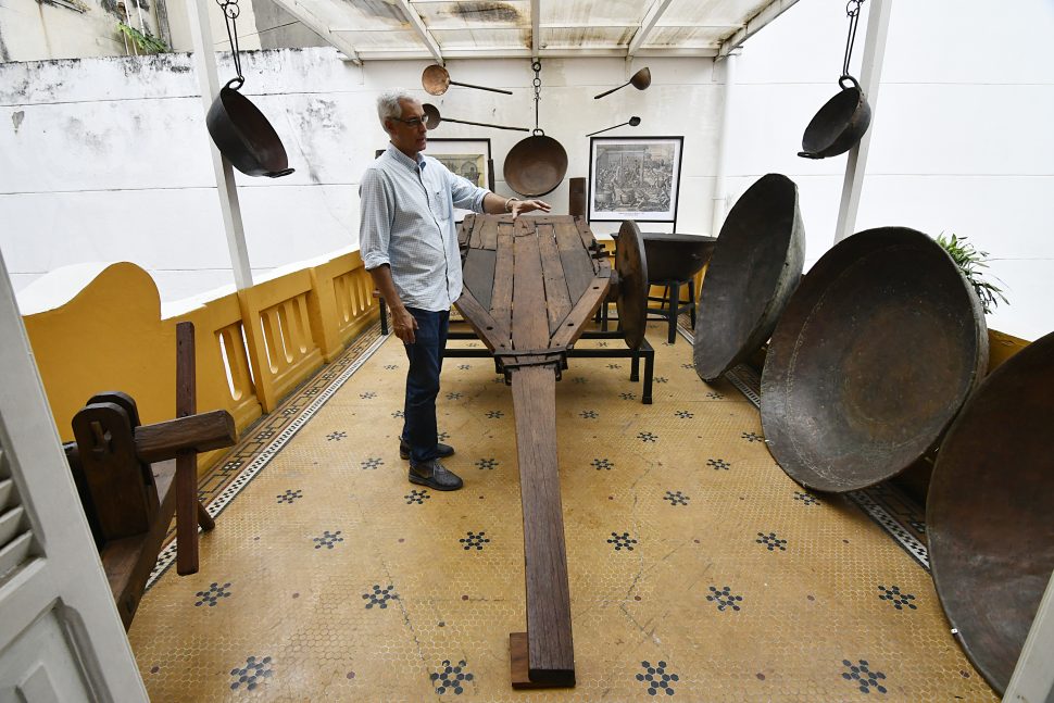 “Meus bisavôs foram escravos e essa é a primeira vez que senti de forma tão intensa como eles sofreram na época. Nunca tive esse choque de realidade. O negro está bem representado nesta casa. Esta exposição é um resgate ao passado da minha família”, lembrou Mônica, que ainda ficou impressionada com as cerca de 150 peças de utensílios para culinária da época, como o tonel de aguardente e a moenda portátil de cana de açúcar.