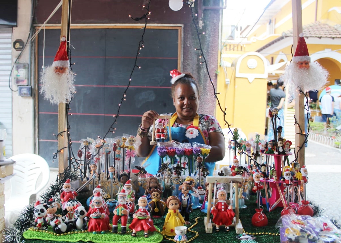 Uma das barracas chama a atenção é a de bonecas inclusivas. A expositora Sônia da Silva, de 55 anos, conta que decidiu dar vida a este projeto para mostrar às pessoas que a inclusão é sim, uma solução. “Eu trabalho a inclusão e as diferenças. Vejo isso como uma maneira diferente e acolhedora para as pessoas. Participei, na semana passada, de um evento e saí de lá ainda mais motivada, com muitas ideias. Que 2020 me segure, pois venho com tudo!” garante a artesã, diante de sua coleção com bonecas de todas as cores e jeito que se pode imaginar: bonecas com vitiligo, negras, albinas, cadeirantes, transplantadas, com prótese e Síndrome de Down.