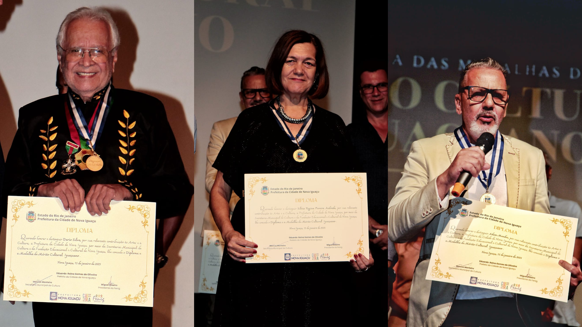 À noite, as comemorações prosseguiram com a solenidade de entrega da Medalha de Mérito Cultural Iguaçuano, no Complexo Cultural Mário Marques – Teatro Sylvio Monteiro. Durante a cerimônia, personalidades locais foram condecoradas em reconhecimento às suas contribuições à cultura de Nova Iguaçu.
