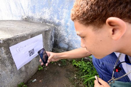 “Com o leitor de QR code no celular, eles recebem um exercício e precisam resolvê-lo. Eles guardam o resultado da questão e depois vão para os outros exercícios. A soma dos resultados é a senha do cadeado que tranca o baú do tesouro. Quem conseguir abrir primeiro, ganha o prêmio do dia”, conta o professor.