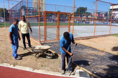 “Hoje falta concretar a quadra, colocar o gramado no entorno para harmonizar o local, as calhas no vão entre a pista e a parte gramada, além das redes nos gols. A marcação das raias de atletismo já foi pintada. A reforma deve ser finalizada em até dois meses”, contou Alexandre Batista.