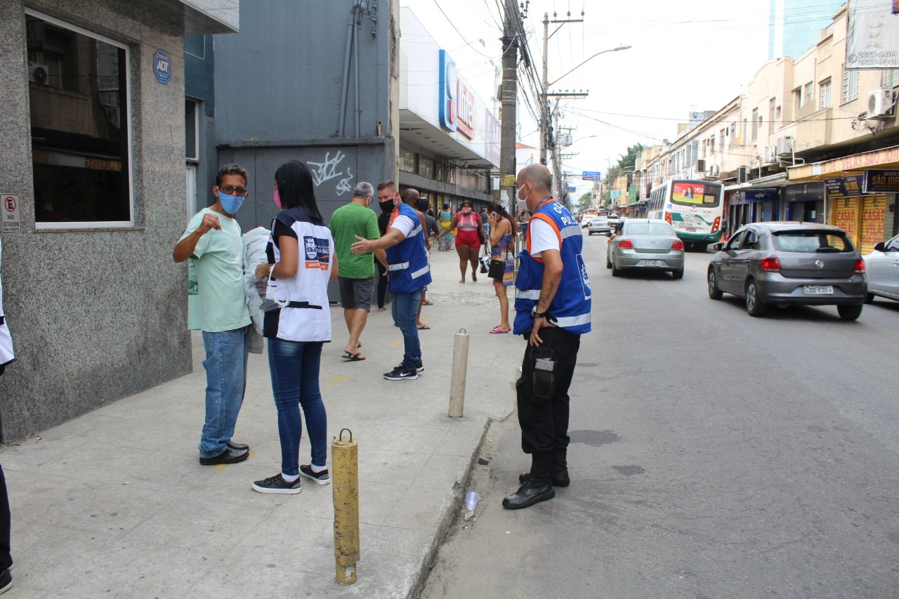 A Prefeitura ainda fez três pontos de bloqueio: um na Avenida Governador Portela, um na esquina da Travessa Ernestina com a Marechal Floriano Peixoto e outra no início do calçada da Caixa. Também foi disponibilizada uma equipe móvel para fiscalizar o distanciamento entre as pessoas na fila.