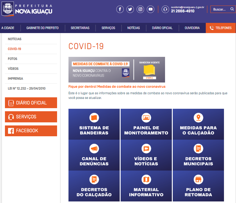Prefeitura de Nova Iguaçu lança página em seu site com informações sobre a Covid-19 na cidade