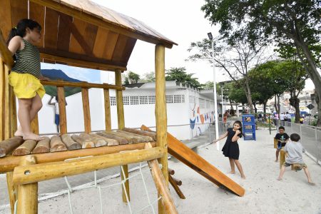 Praças públicas resgatam brincadeiras entre crianças em Nova Iguaçu